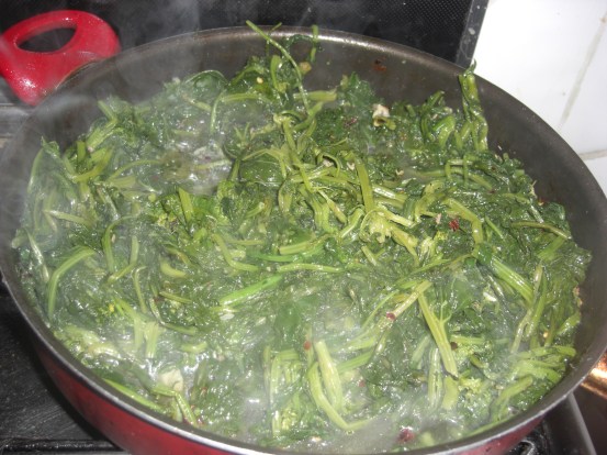 1. Chop the greens and wash the leaves under running water. Leave to drain.